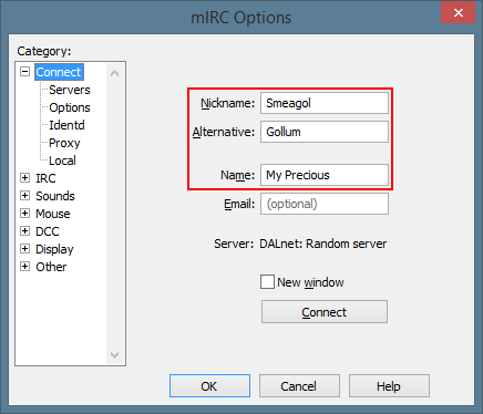 Basic User Information ◄ Back Next ► Picture 12 of 18 Enter in your name (it is not recommended put your "Real" full name as it will be visible to users), nickname, and alternate nickname. Click on Connect